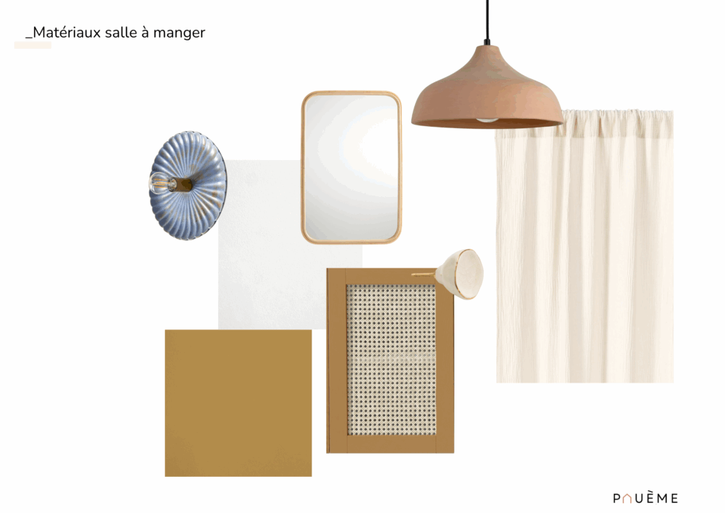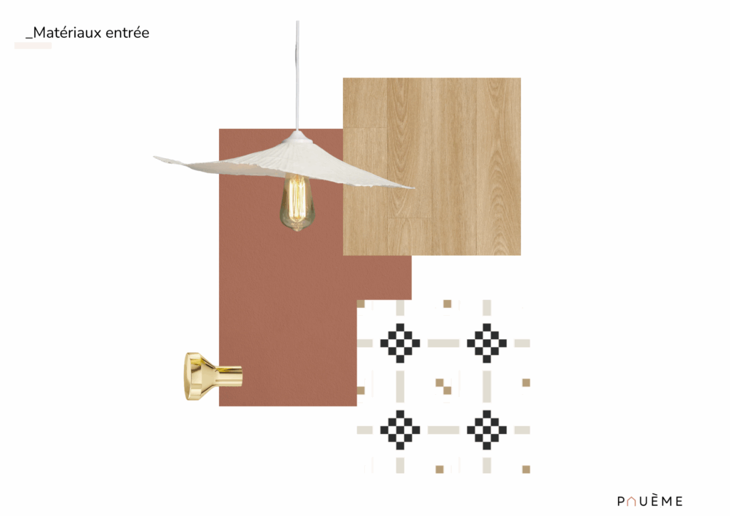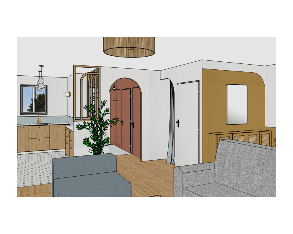Le parquet, la mosaïque, le bois, les lignes arrondies et la palette de couleurs ensoleillées délimitent les espaces, apportent du caractère et crée un ensemble chaleureux.